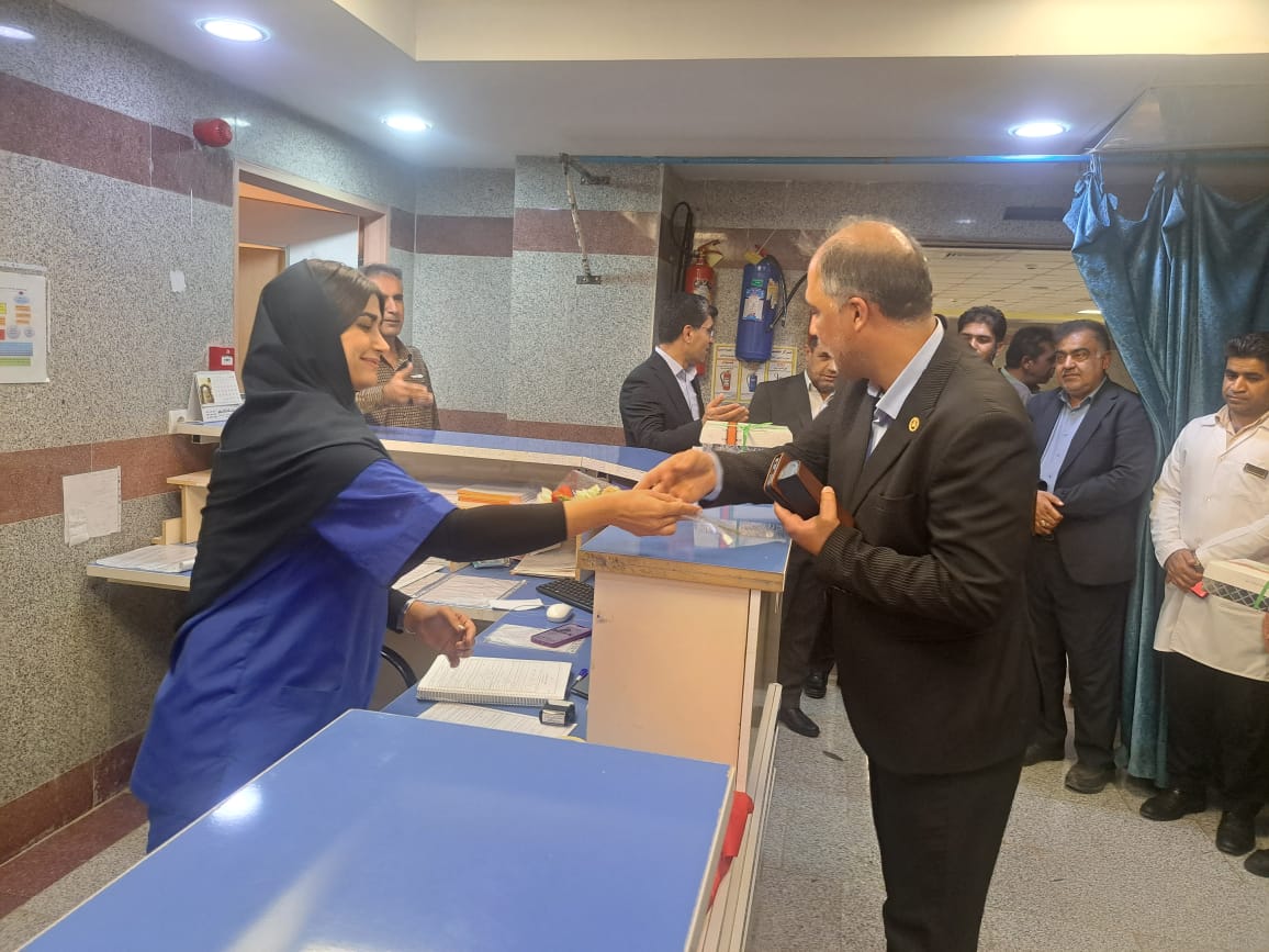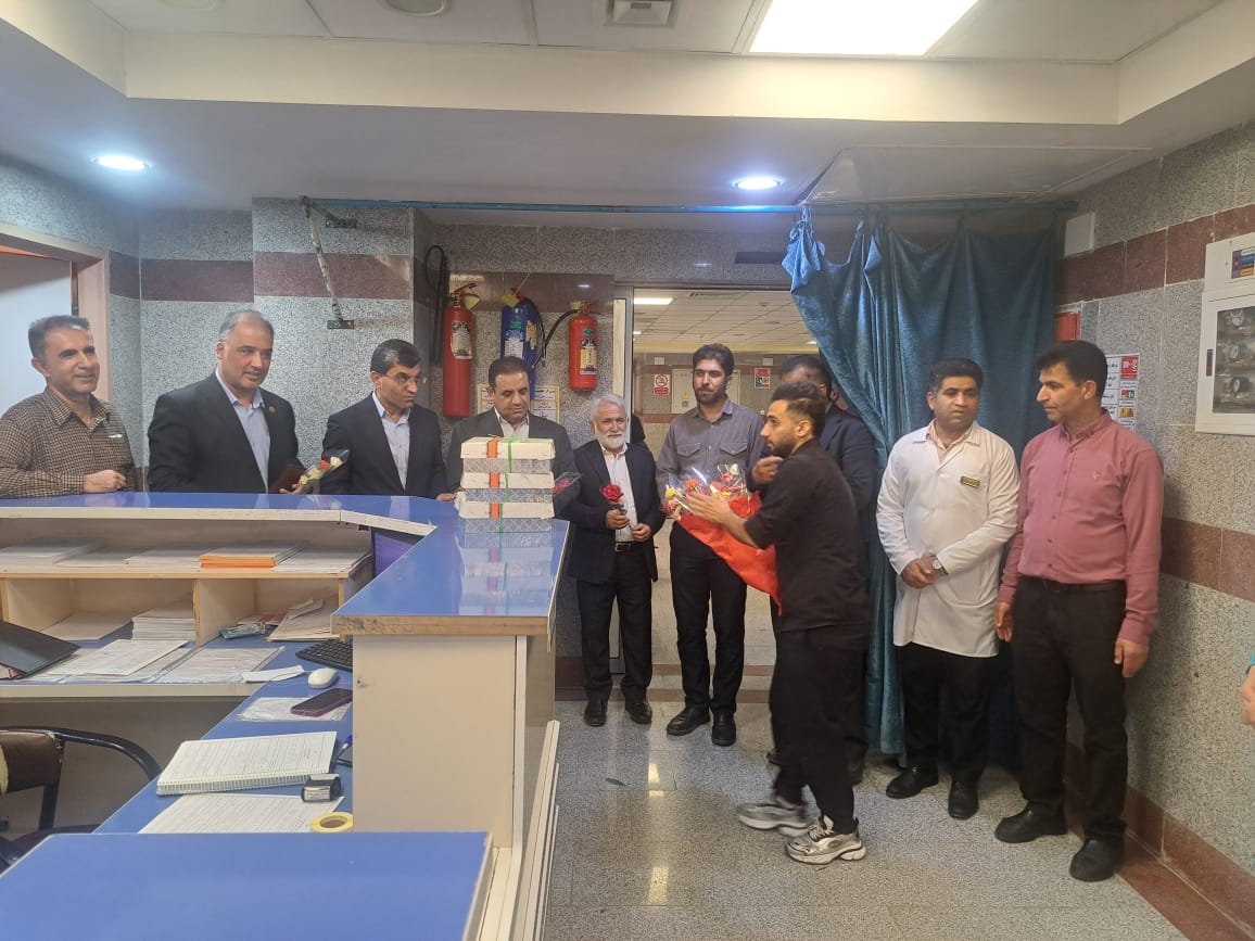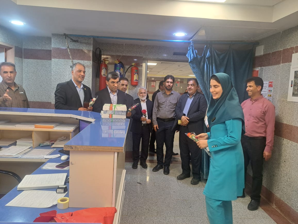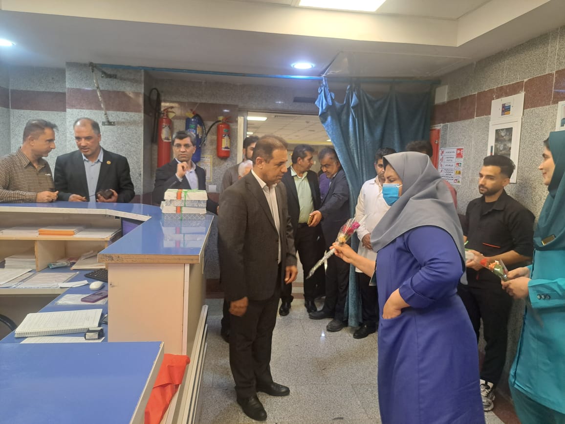 ✍️ دکتر حجت الله خسروی با حضور در بخشهای بیمارستان با اهدا گل و شیرینی از زحمات و تلاشهای قشر ماما و کارگر تقدیر نمودند