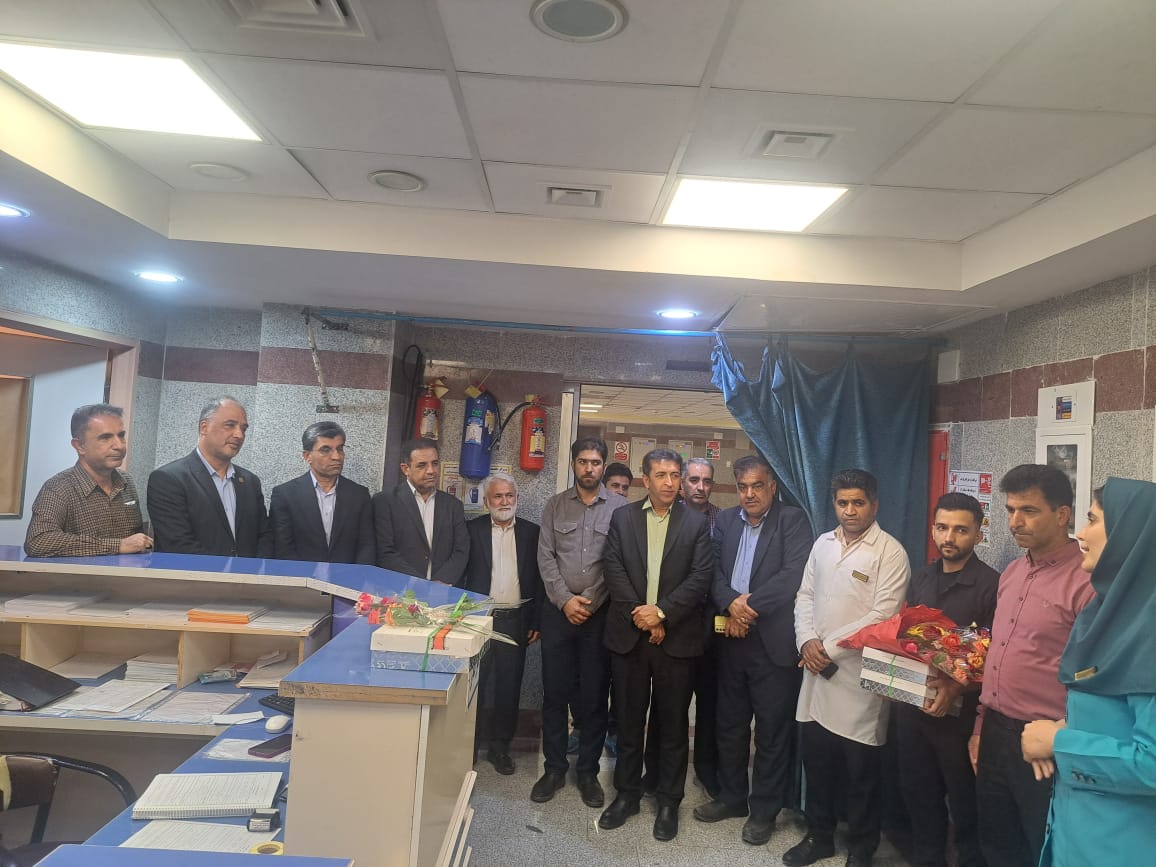 ���� بعد از بازدید و تجلیل در بخشهای بیمارستان جلسه ای در محل سالن جلسات تشکیل و مشکلات حوزه را توسط مدیر و همکاران شاغل جویا و بر رفع مشکلات قول مساعد و بر پیگیری تاکید نمودند