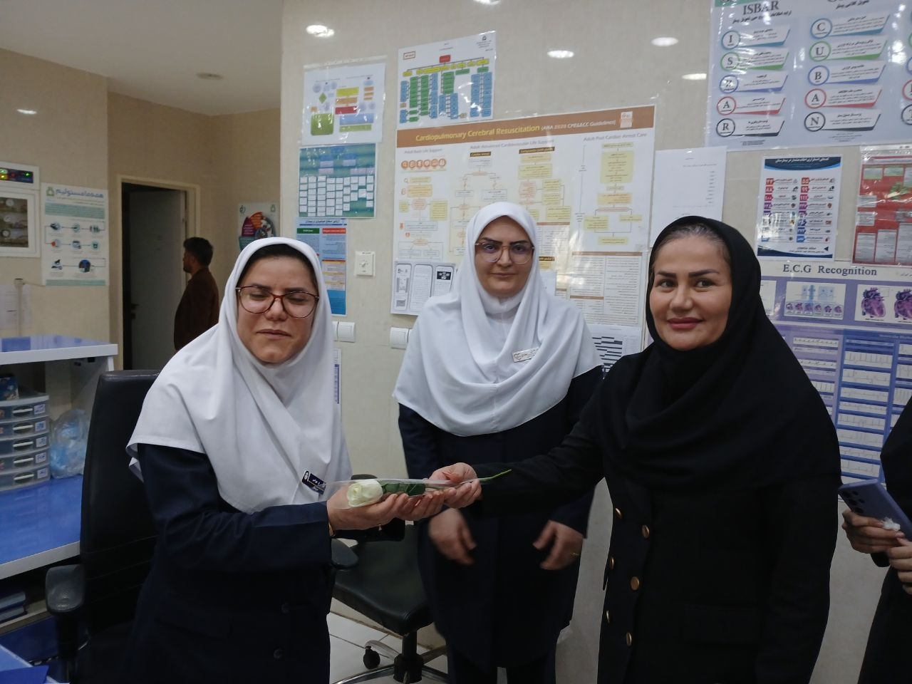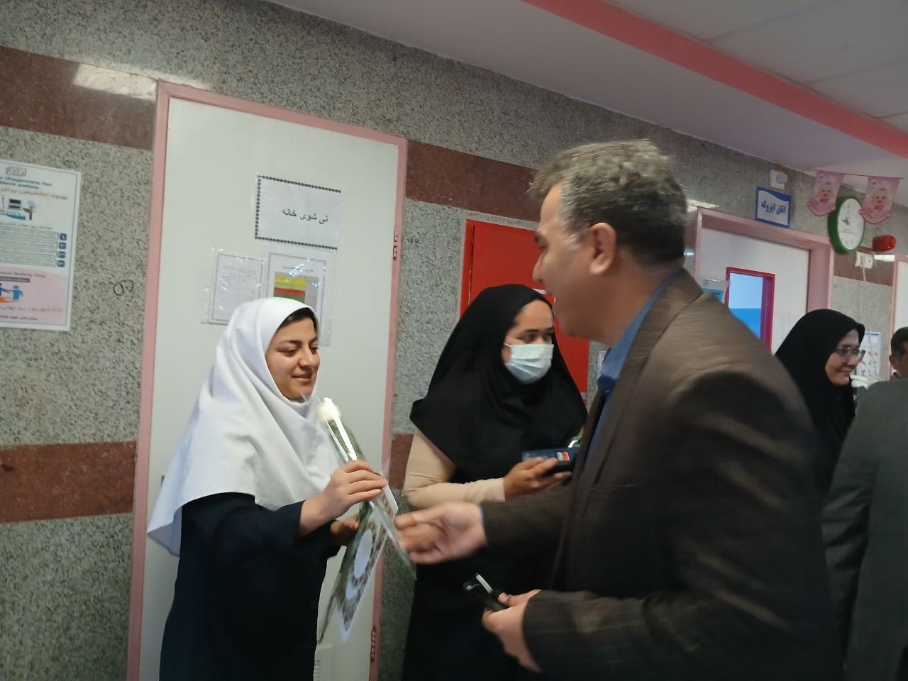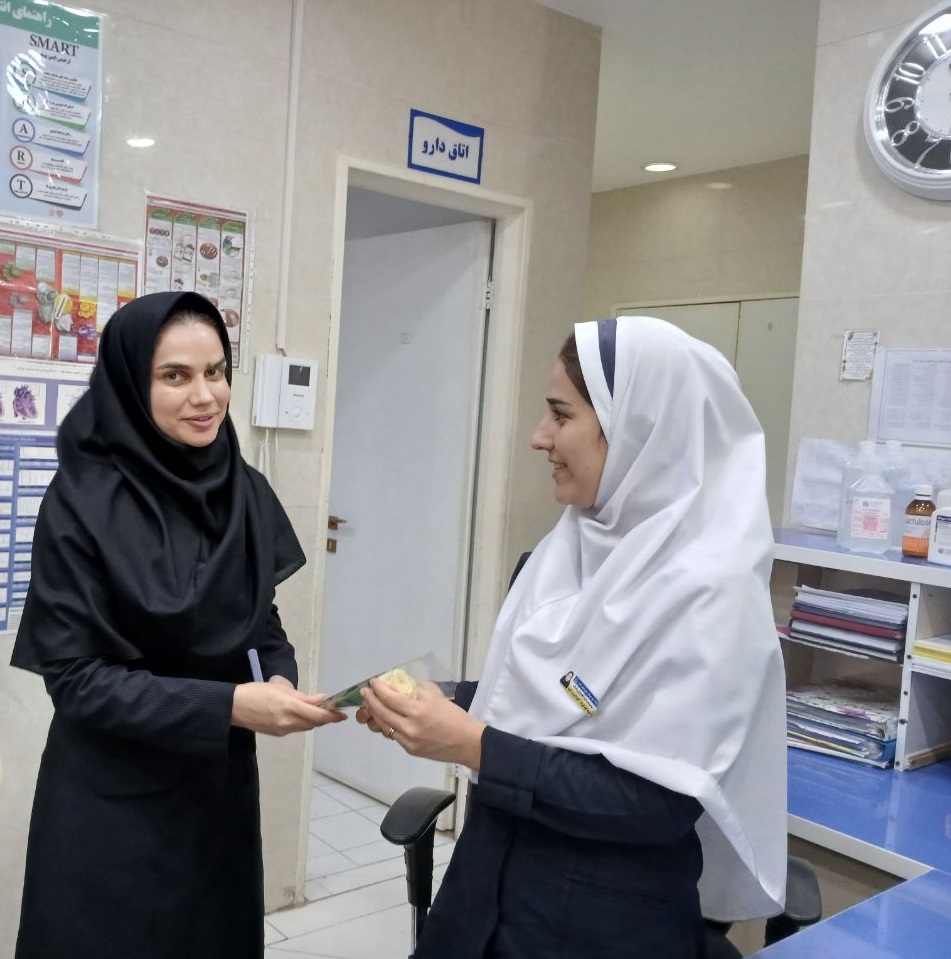 در پایان این مراسم با اهدای لوح ،شاخه گل وشیرینی از پرستاران و کادر نمونه تجلیل به عمل آمد.