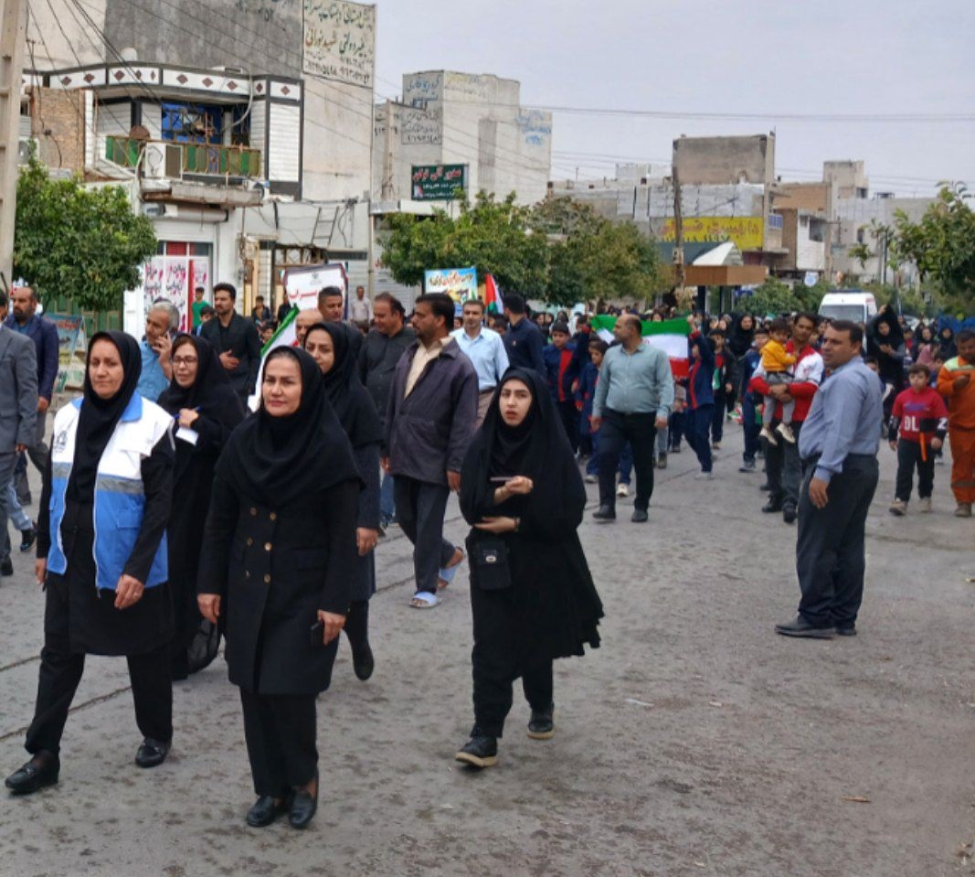 حضور حماسی و باشکوه مدیریت و پرسنل شبکه بهداشت و درمان شهرستان باغملک در مراسم ۱۳ آبان