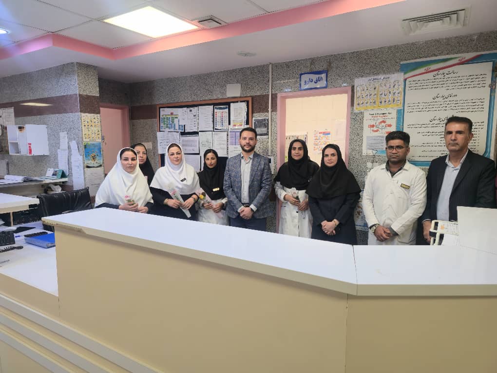 مراسم تجلیل از پرستاران شاغل در بیمارستان شهید طباطبایی باغملک باحضور سرکار خانم دکتر فاطمه عسکری تامرادی سرپرست شبکه بهداشت ودرمان ، دکتر مجیدی سرپرست بیمارستان ، زنگنه نژاد مدیر داخلی ، ممبینی معاون درمان ، و جمعی از مسئولین بخشها و ستادی