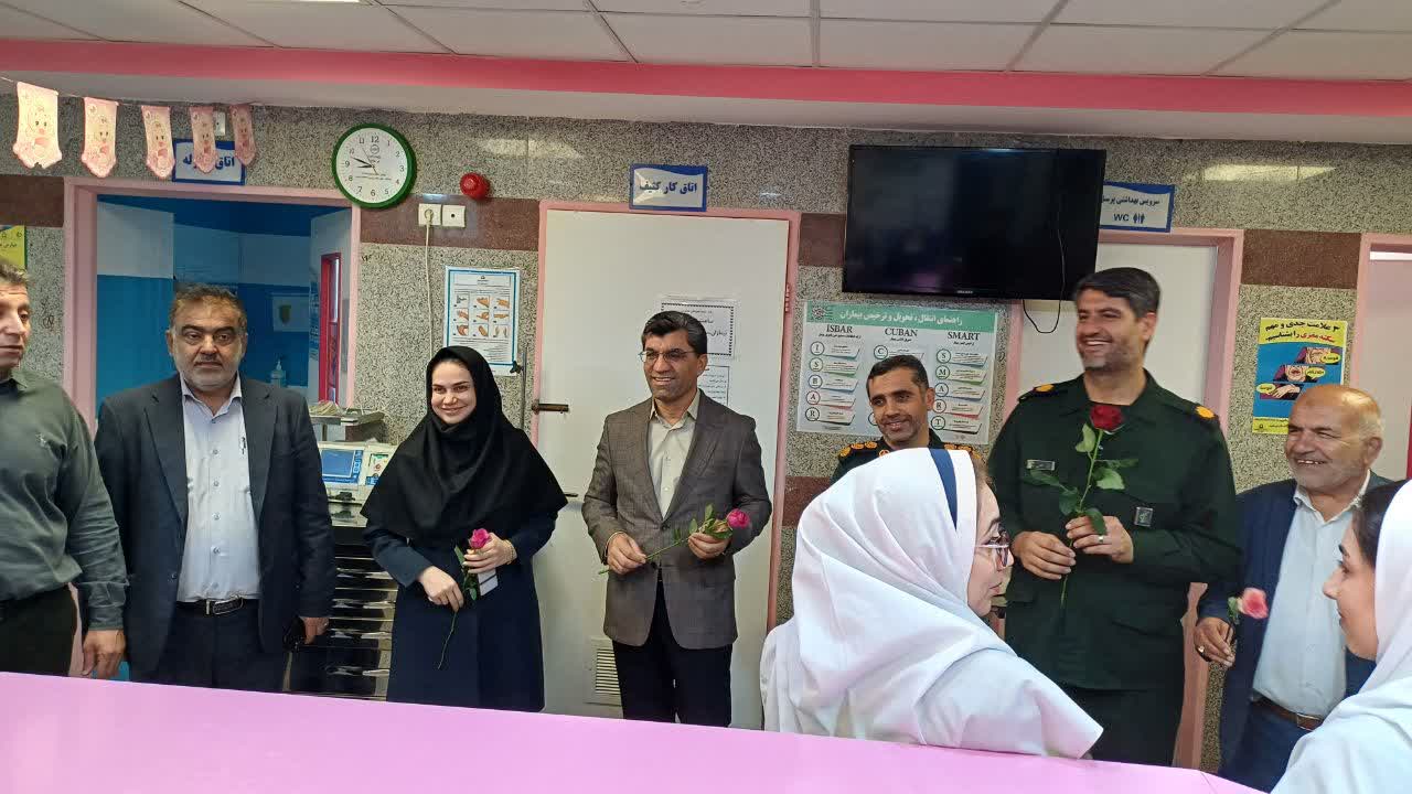 در این مراسم با اهدا گل به کادر درمان از خدمات آنان تقدیر و تشکر به عمل آمد
